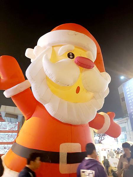 門口的大型聖誕老人充氣娃娃也點亮了整個街道的聖誕主題