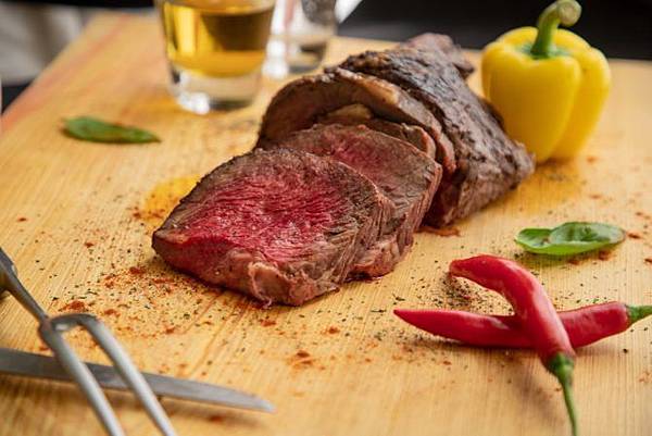 採用美國牛肉腹部,將整塊的牛肉用一隻烤肉棍架在炭火上直接燒烤。