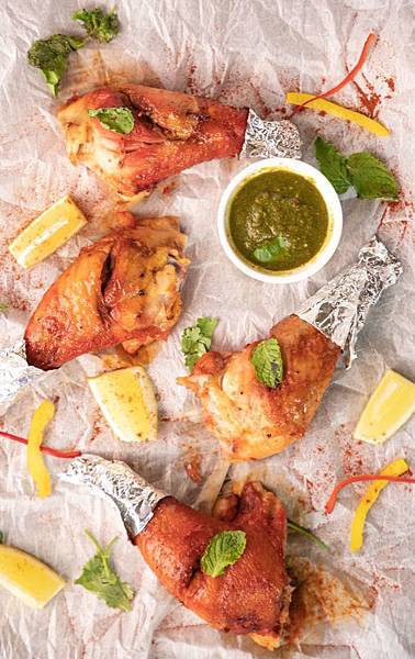 以香料和乳酪將雞塊醃過,再塗上燒烤汁,然後放入圓筒形的陶泥烤爐內燒烤。
