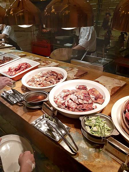 每位饕客自己走到烤肉檔前,由主廚再幫你切削,每一刀,都有冒著熱氣和香味的肉汁流下,刺激著食客的嗅覺、味覺和視覺神經。