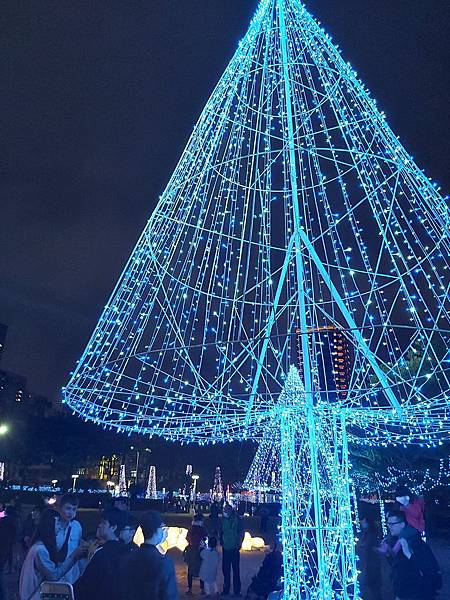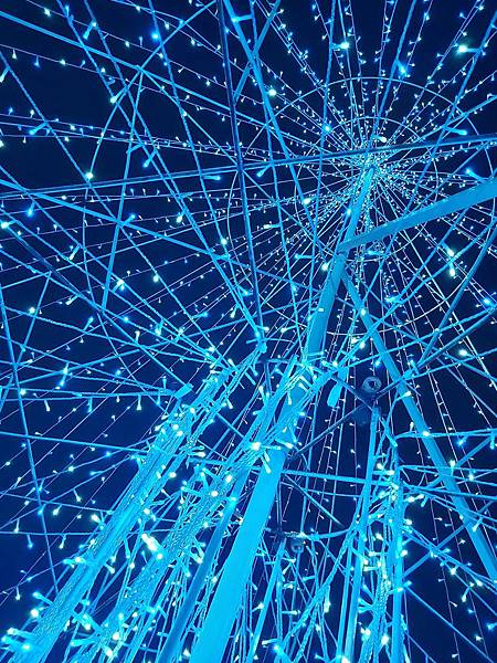 同時這裡也配合雪景塑造出森林的樣子 , 樹木整棵由藍色小燈泡跟支架交錯成美麗的形狀