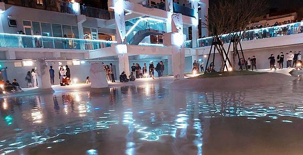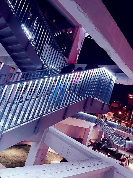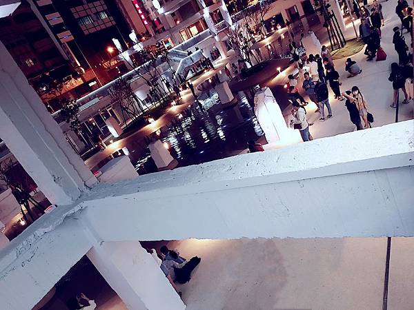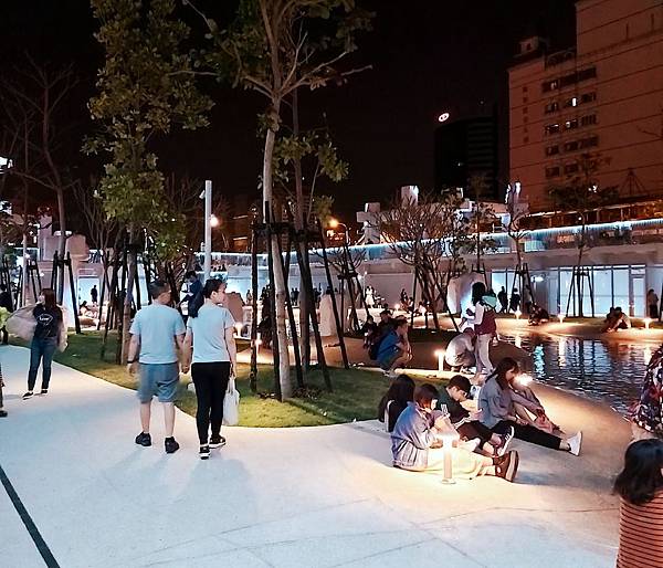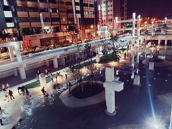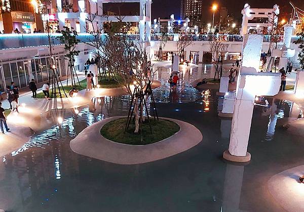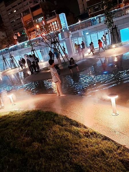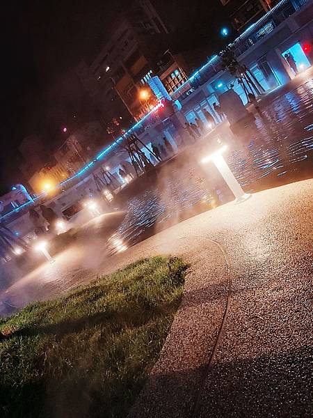 下層公園旁邊不定時還會噴灑水霧搭上暖色燈光